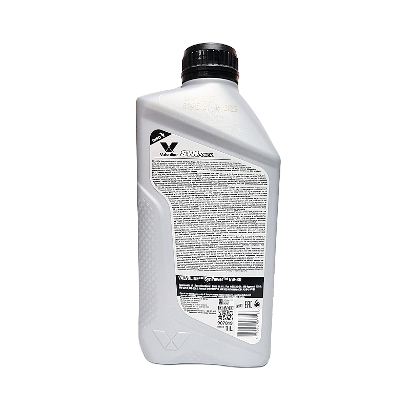 При переходе на Valvoline SynPower 5W‑30 выполните полную замену масла (не ограничивайтесь доливом).